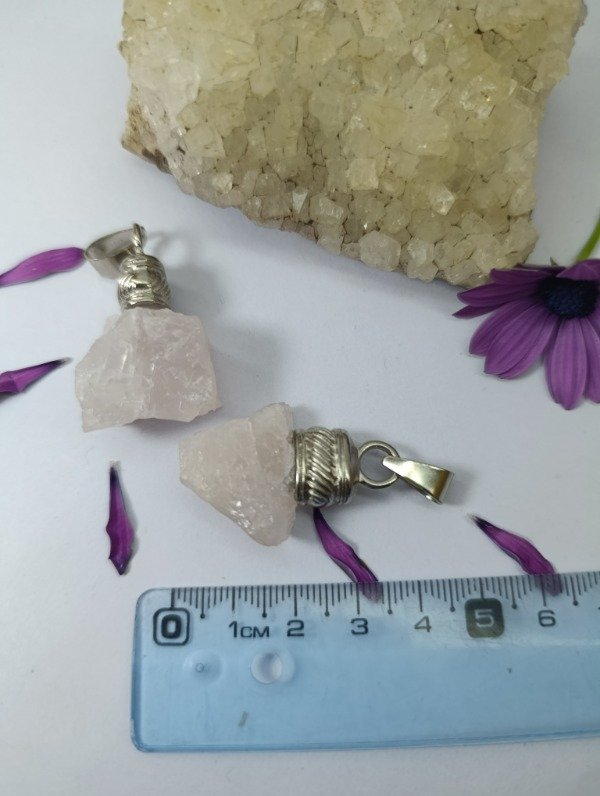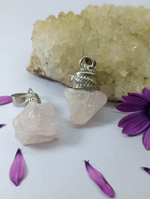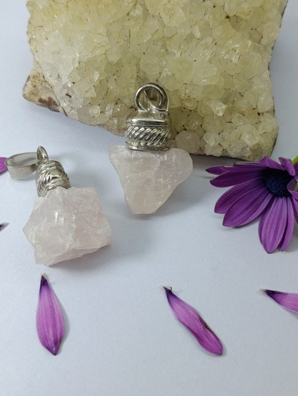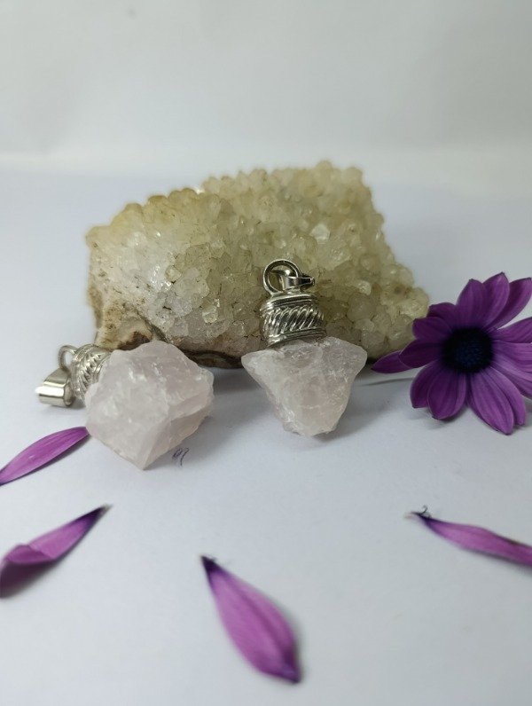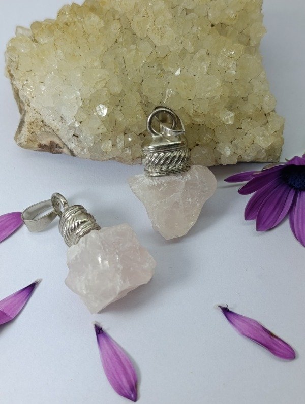 Dije de piedra Cuarzo rosa bruto rústico en guarda estilo simple