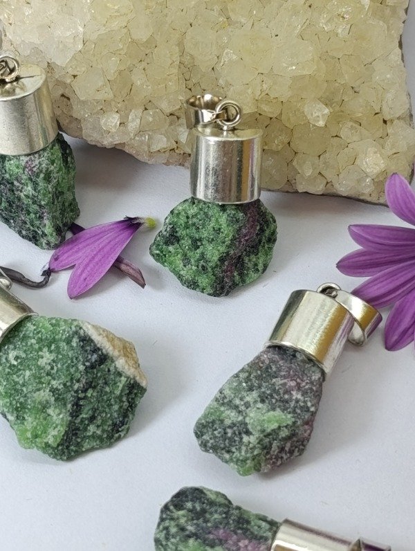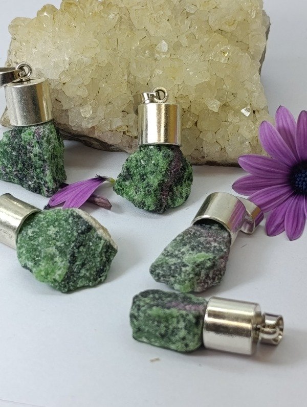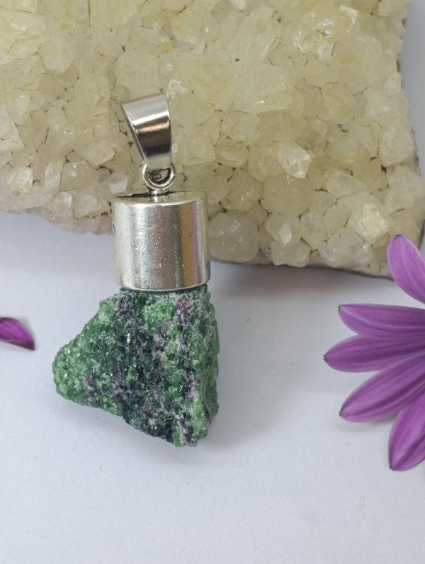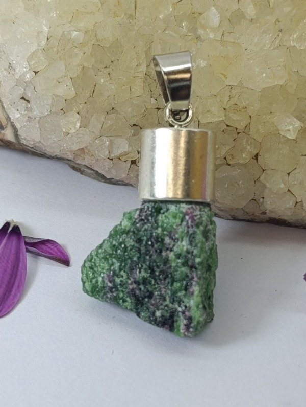 Dije de piedra Zoisita con Rubí con guarda Simple