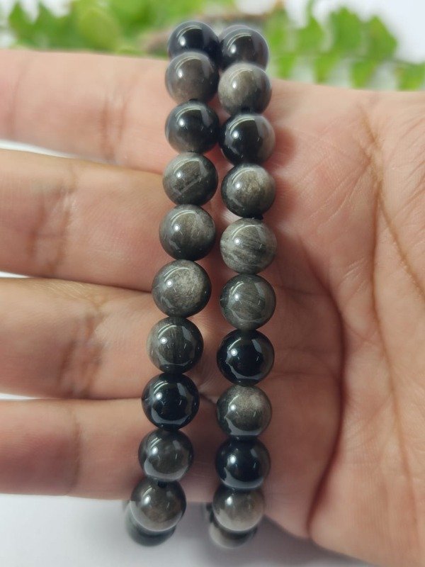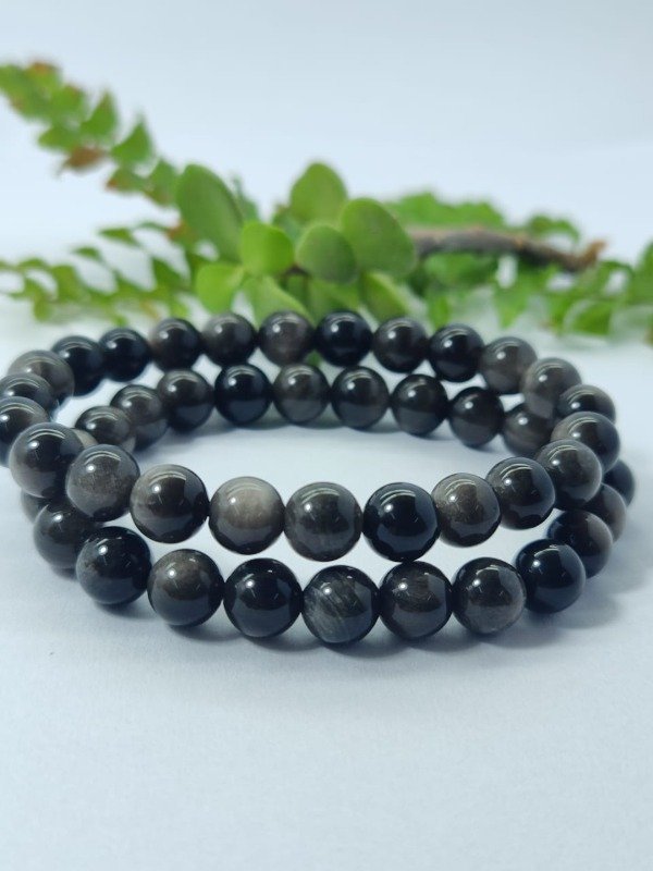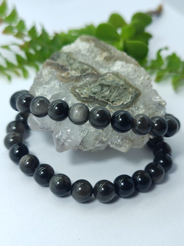 La obsidiana plateada tiene propiedades asociadas con la protección psíquica, la purificación, el autoconocimiento y la vitalidad. Se cree que ayuda a liberar bloqueos emocionales y mentales, reduce el estrés y la ansiedad, y promueve la fortaleza física y la resiliencia.
