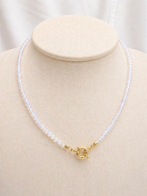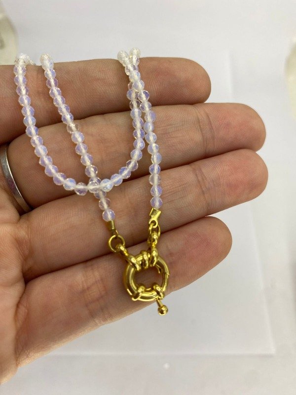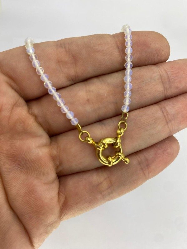 Collar de Piedra Opalina Facetada de 3mm Con Dije Marinero Bañado en Oro.45cm de Largo .