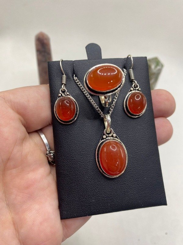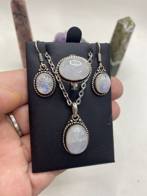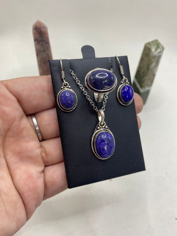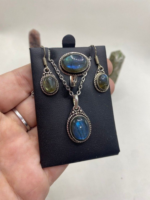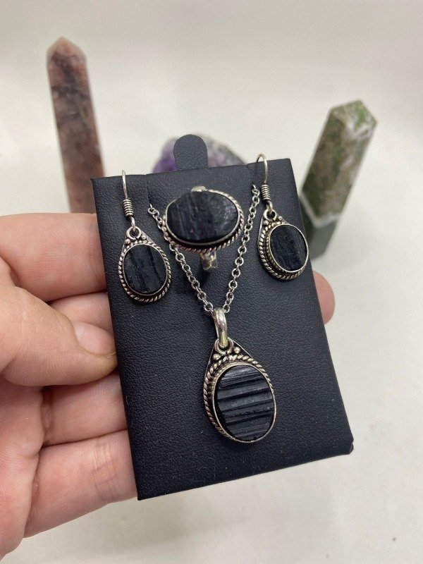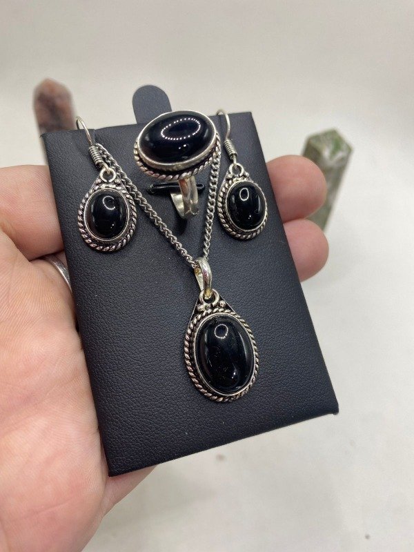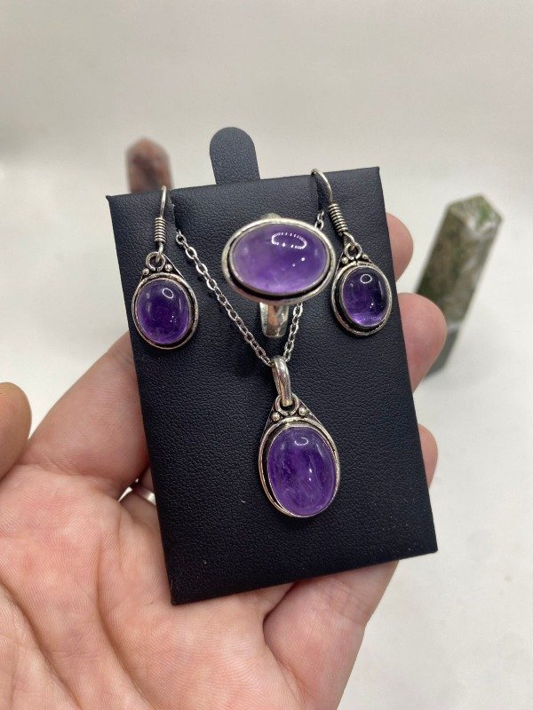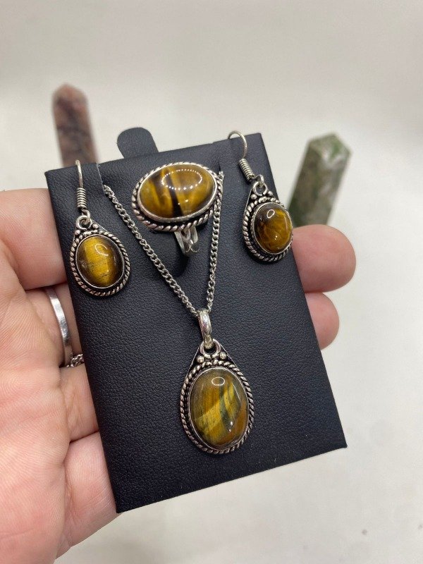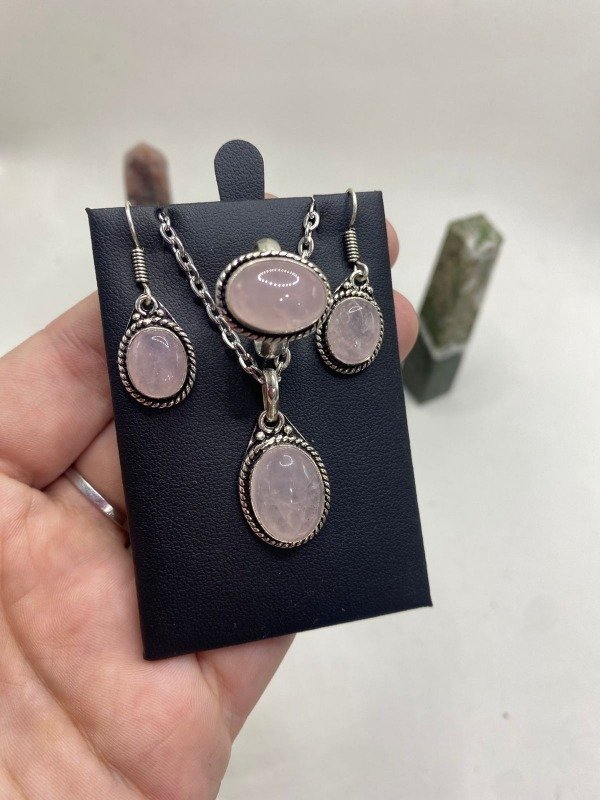Conjunto Tres Piezas de Piedras Naturales Bañado en Plata.