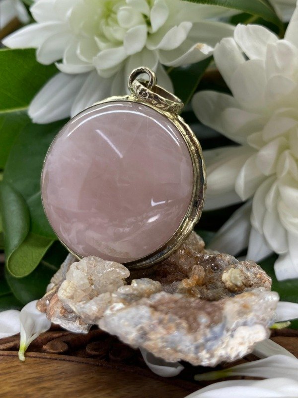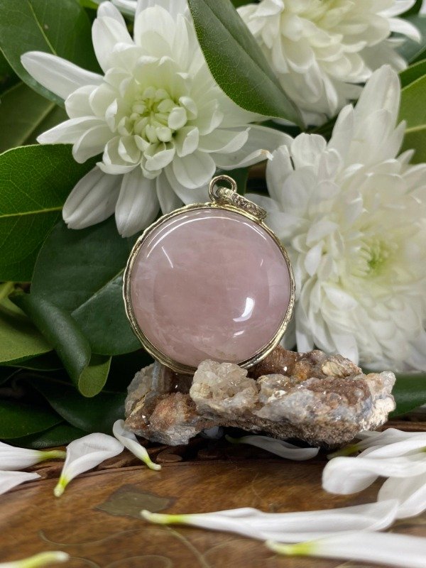 Dije de Piedra Cuarzo Rosa Redondo de Alpaca