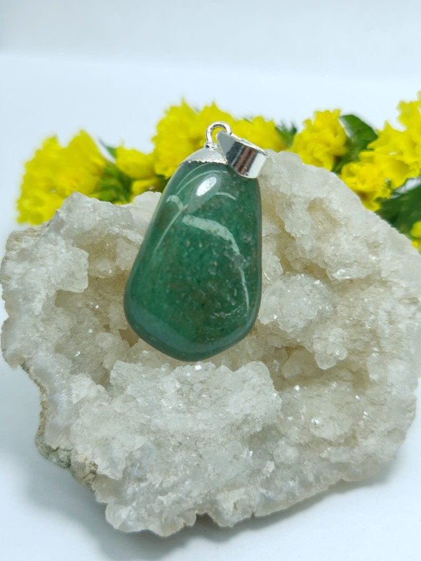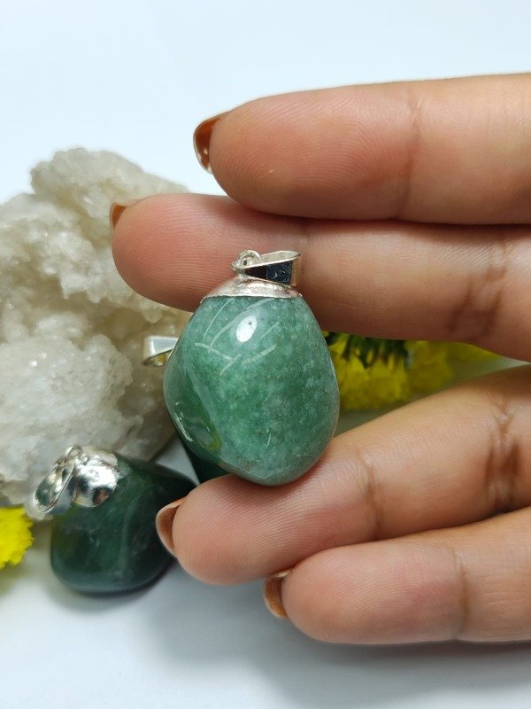 Este dije presenta un cuarzo verde, enmarcado con un delicado baño en plata, que realza el brillo de la piedra y aporta un acabado sofisticado y versátil, ideal para complementar cualquier estilo.