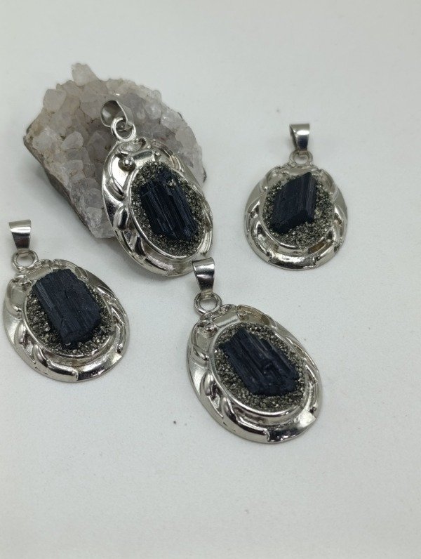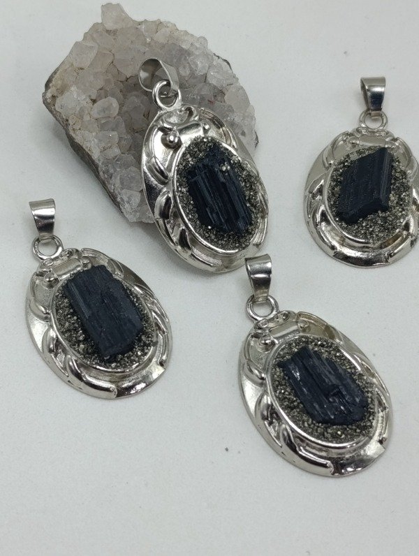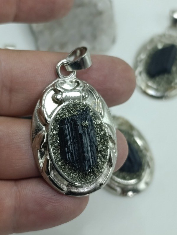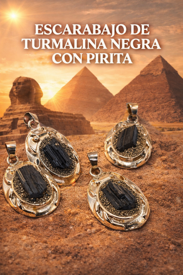 Nuestro escarabajo está realizado con turmalina negra natural, reconocida por su poderosa energía protectora, acompañada por el brillo sutil de la pirita, piedra asociada a la abundancia y la determinación.