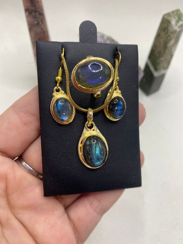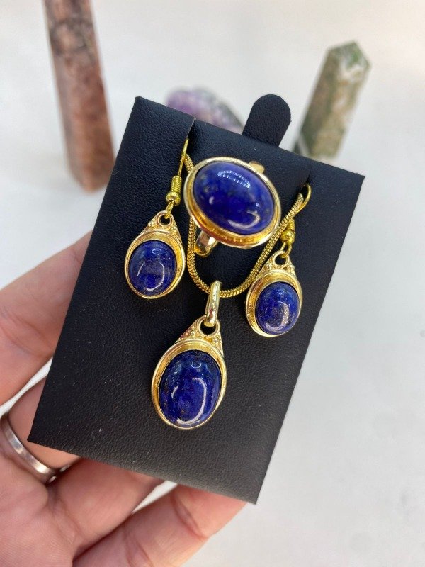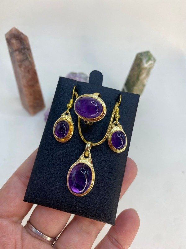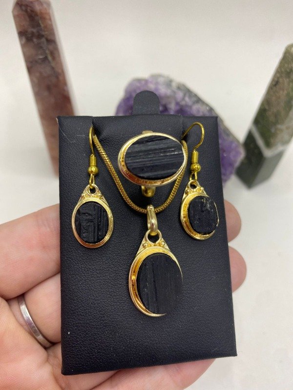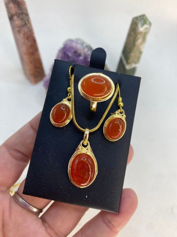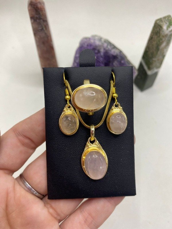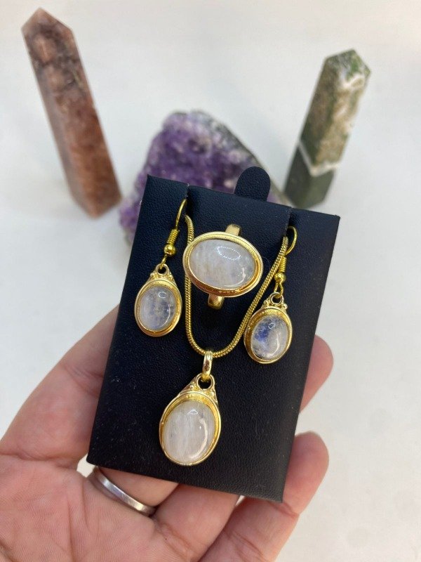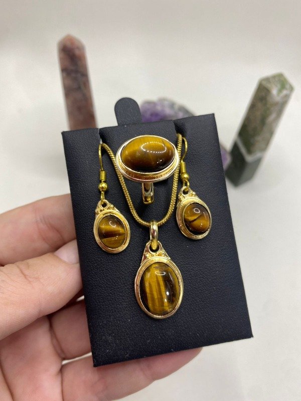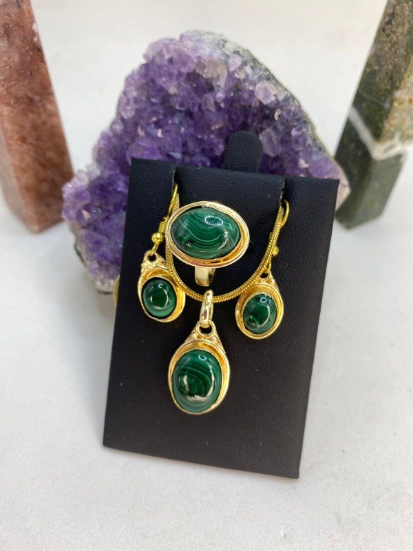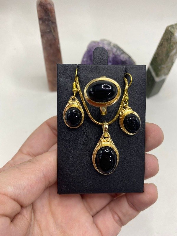 Conjunto de tres piezas de piedras naturales baño dorado.
