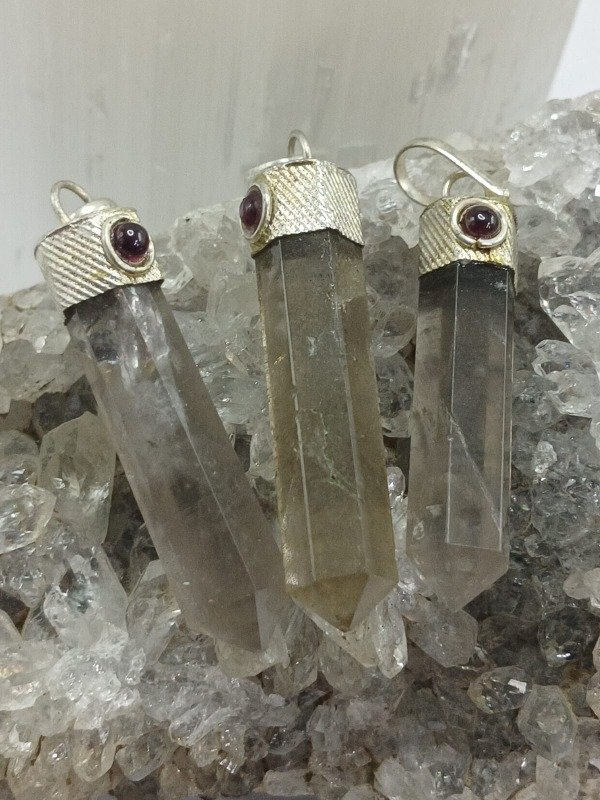 Dije de Piedra Cuarzo Ahumado Punta Electro con Granate