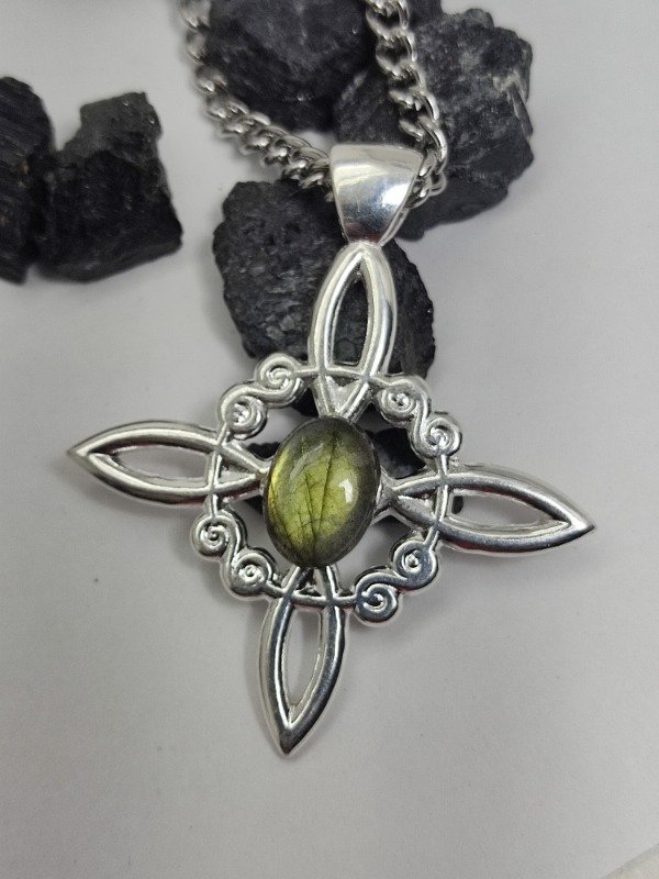 La labradorita es conocida por su habilidad para desbloquear el potencial oculto y fomentar la transformación personal. Cuando se combina con un Nudo de Brujas, esta piedra se vuelve aún más poderosa, brindando protección adicional en momentos de cambio y crecimiento. La labradorita también es conocida por su capacidad para estimular la intuición y la creatividad.